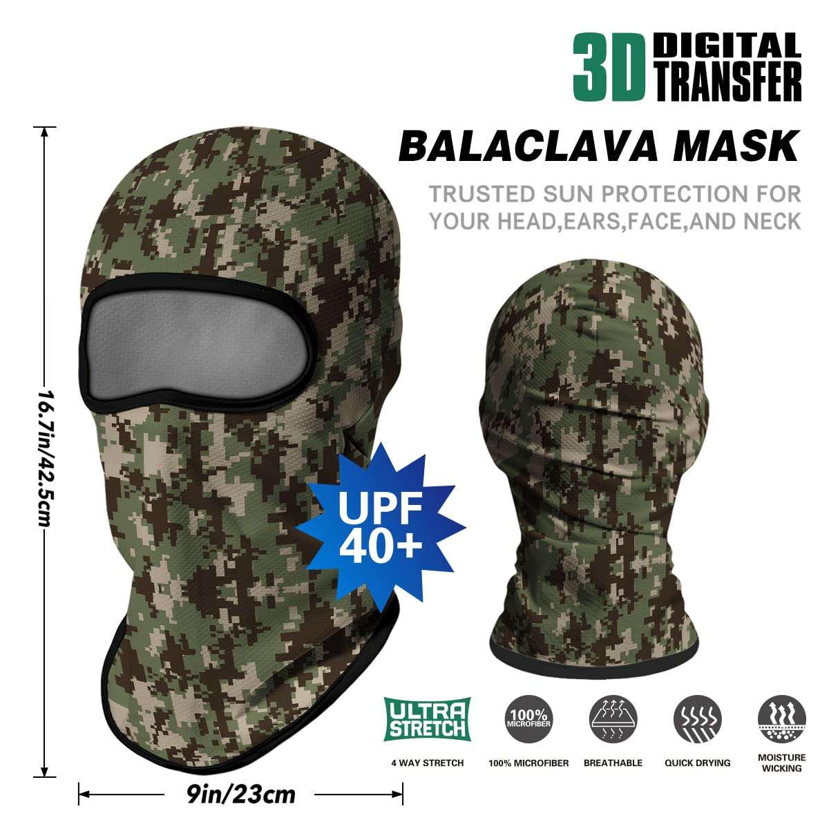 Camo Face Mask Bandana Balaclava Hood Headwear for Men Women Tactical Training Cycling Ski Wind-Resistant
