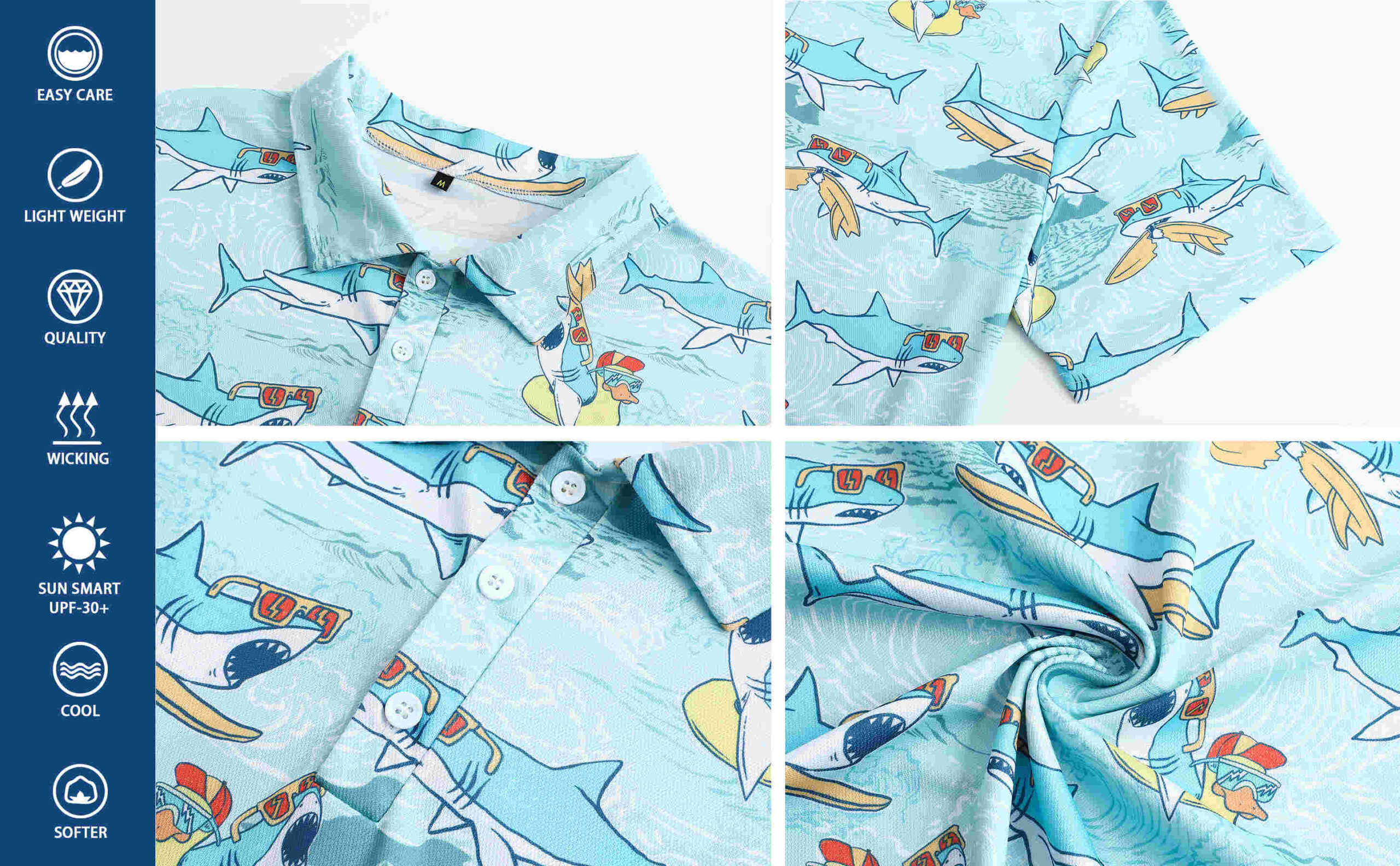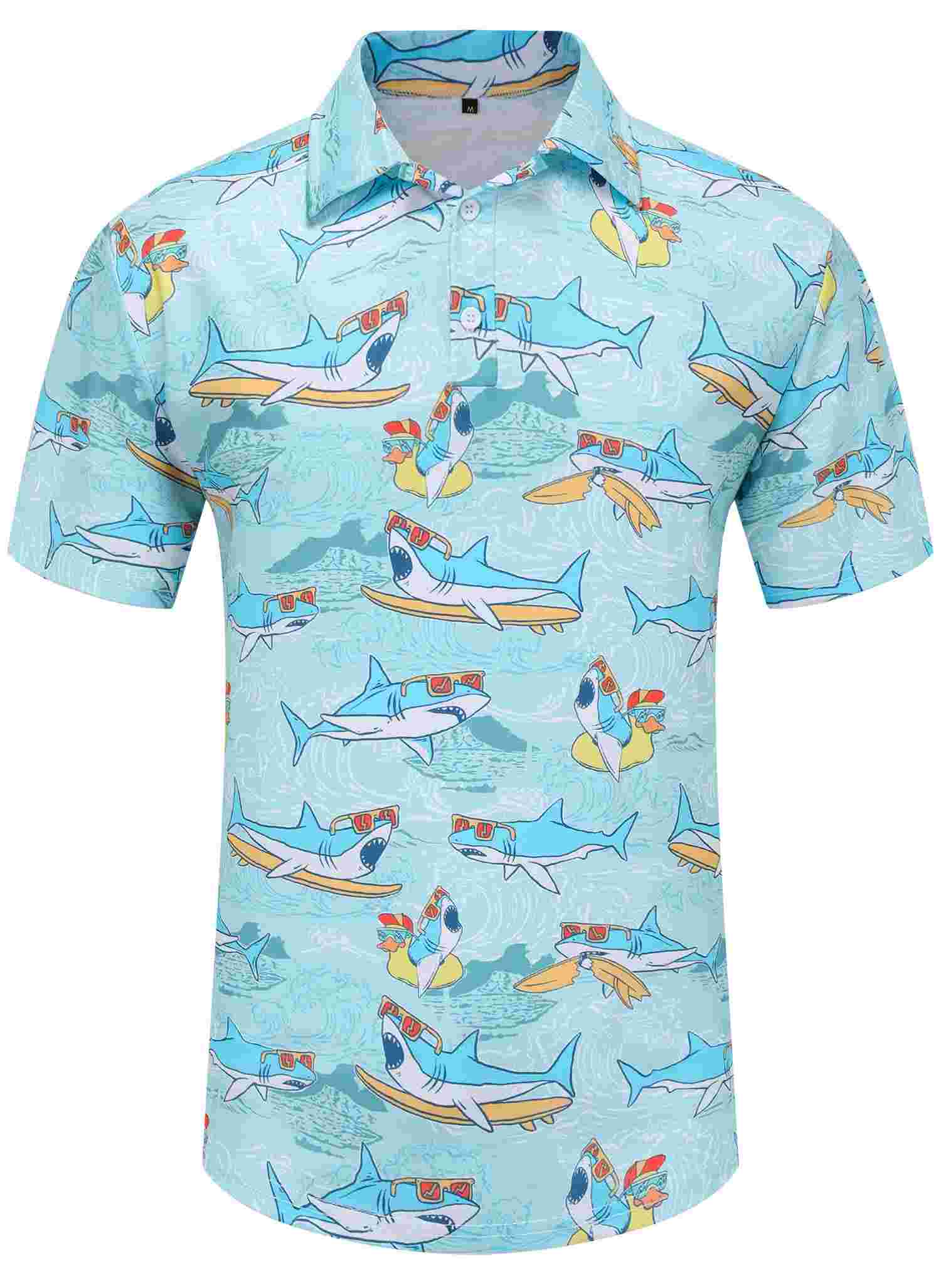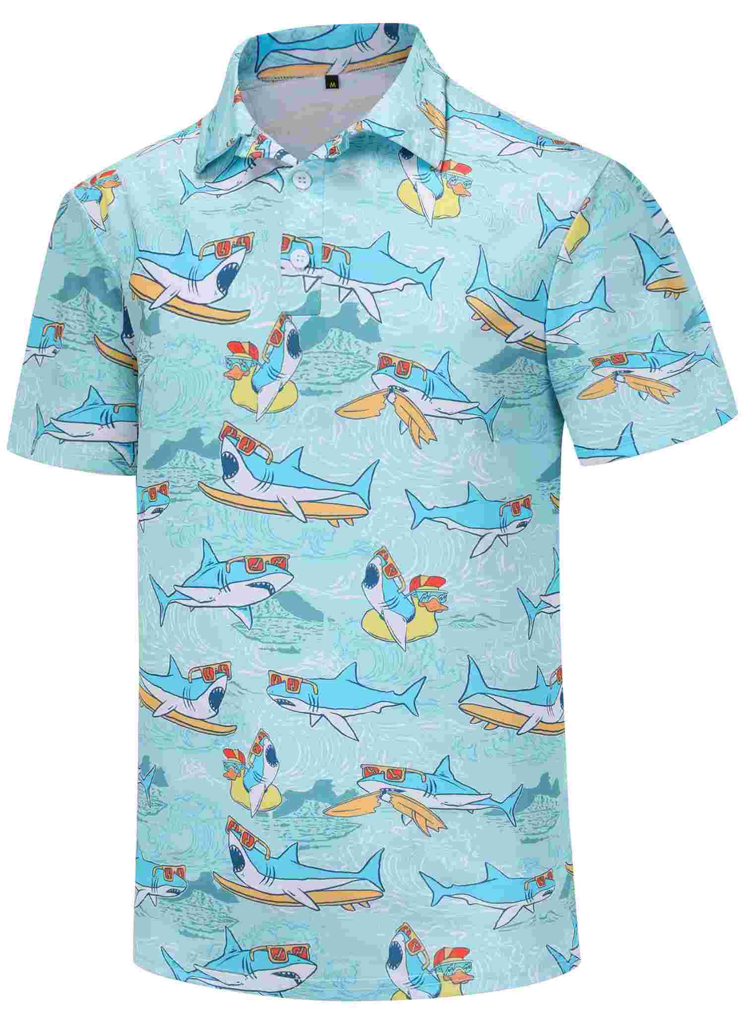 Funny Golf Shirts for Men Dry Fit Short Sleeve Print Mens Shark Golf Polo Shirts for Men