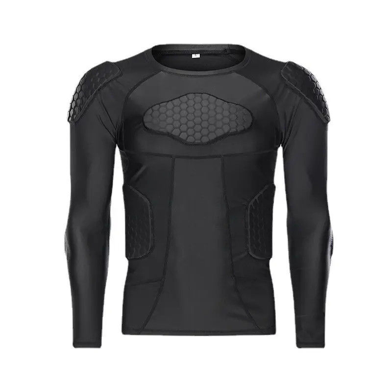 Mens Protective Padded Shirt American Football Compression Shirt Long Sleeve
