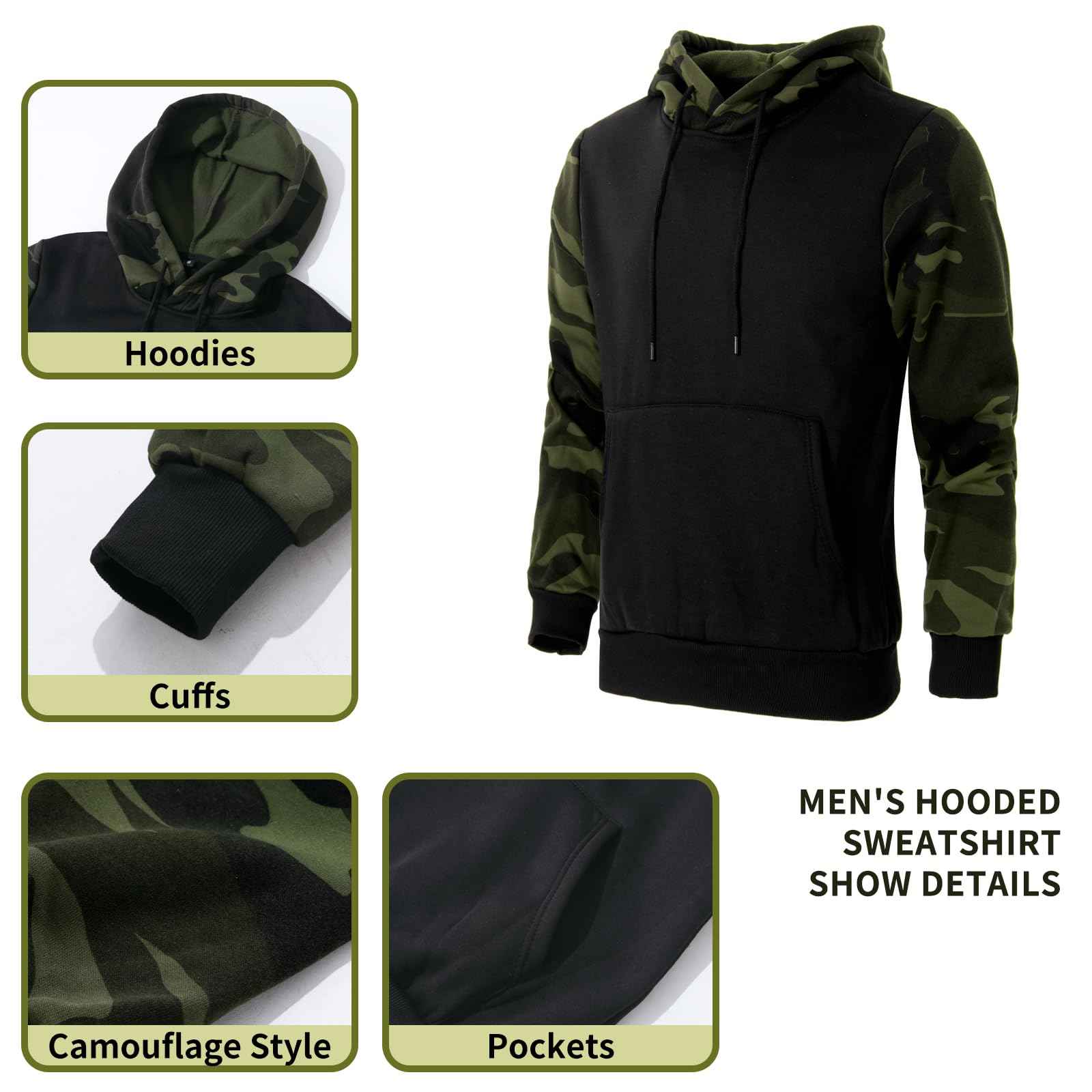 Men’s Pullover Hoodie Long Sleeve Contrast Color Camouflage Sweatshirt with Kanga Pocket