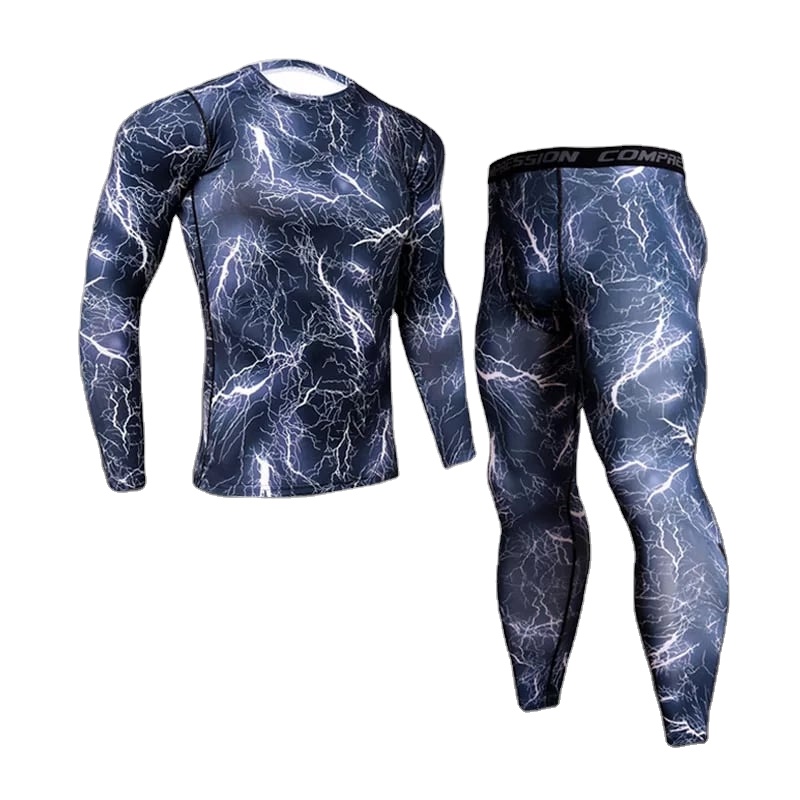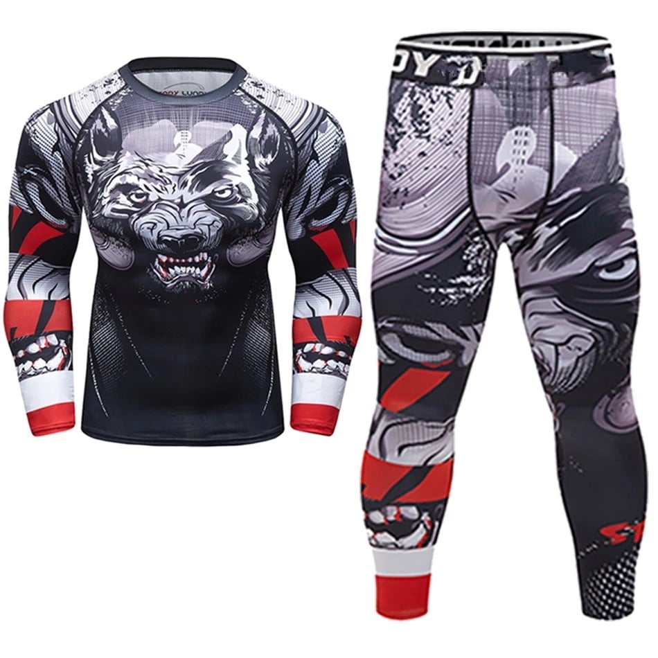 Mens Rash Guard Compression Long Sleeve MMA Tight Grappling Base Layer Combat Set