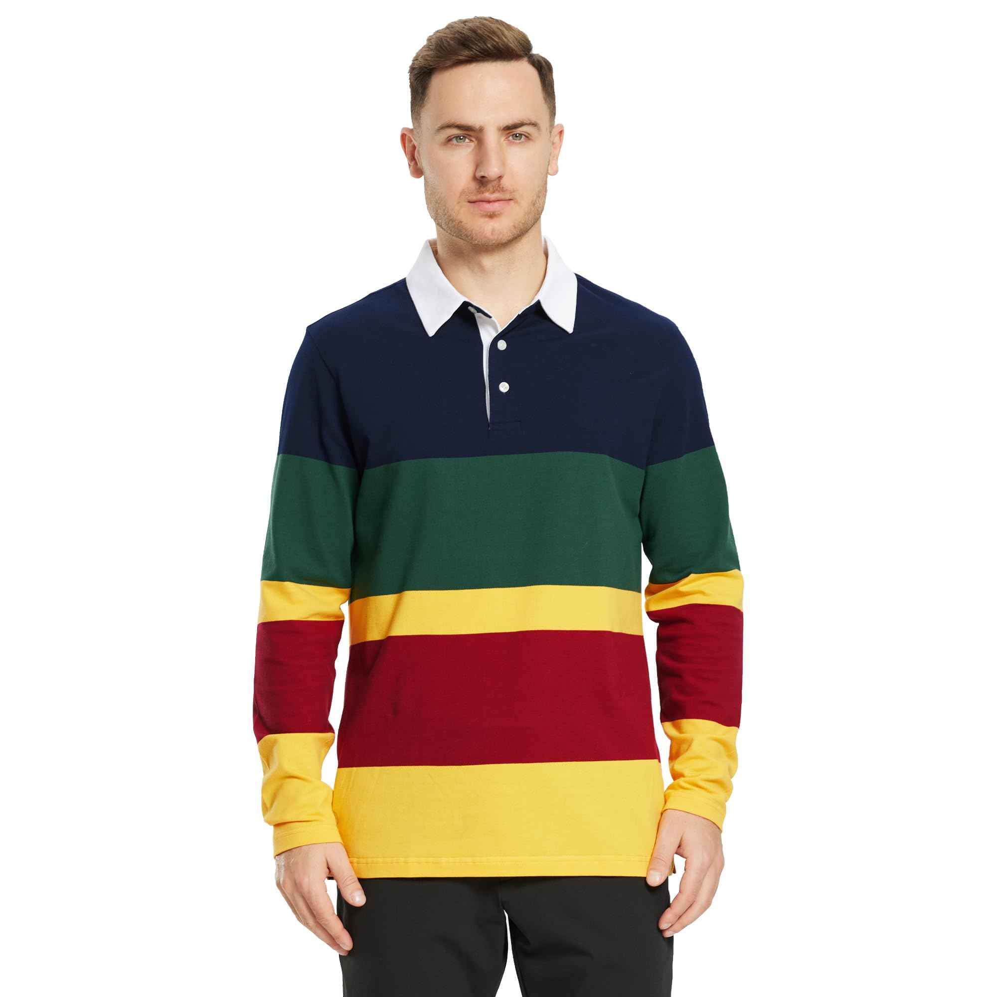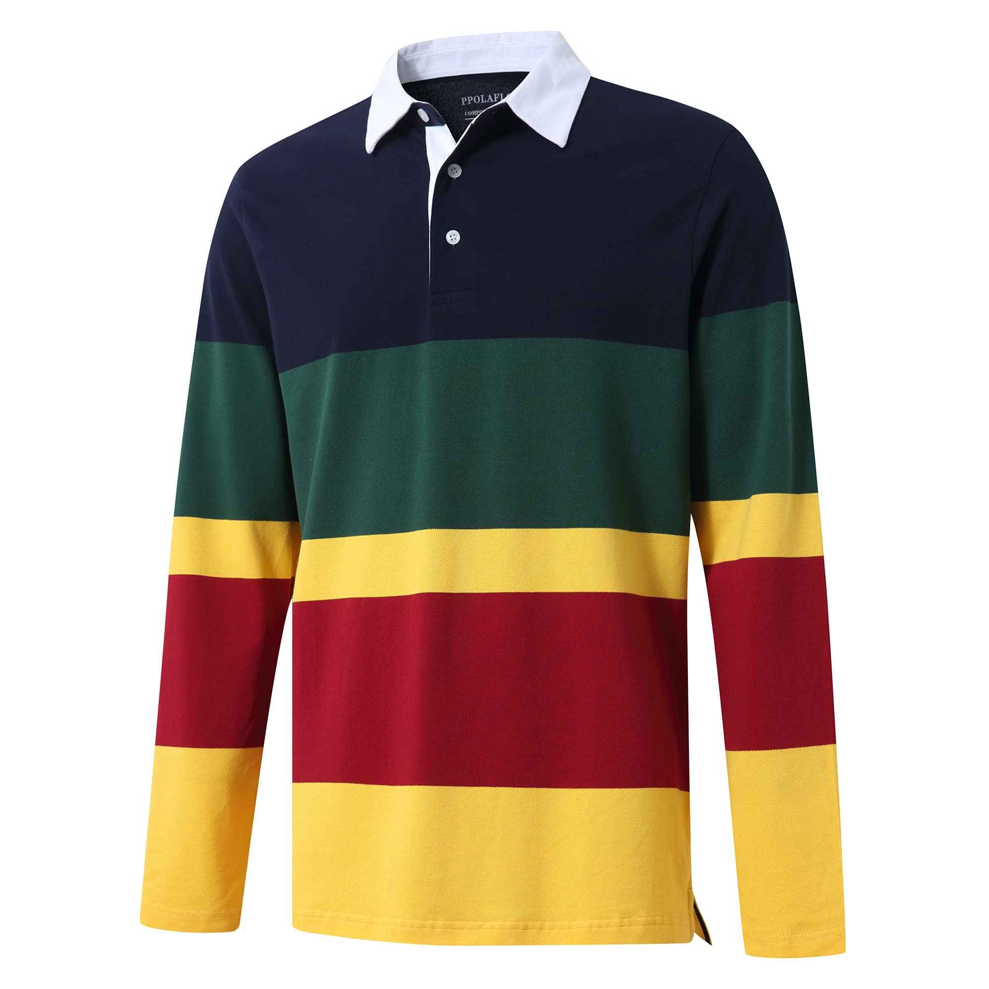 Polo Shirts Long Sleeve Striped Dry Fit Casual Pique Golf Polo Shirts for Men