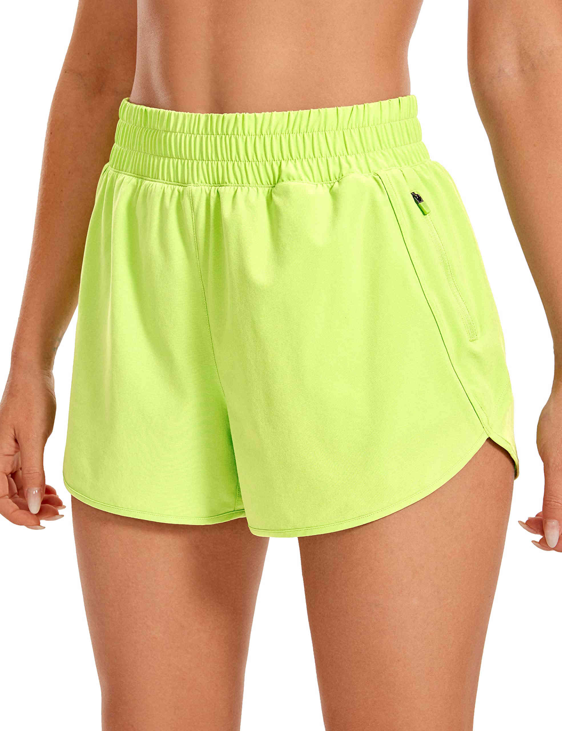 Women’s High Waisted Running Shorts Mesh Liner Quick Dry Athletic Gym Track Workout Shorts Zip Pockets
